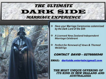официально регистрировать брачные союзы в костюме Дарта Вейдера. Ну а что? Все логично. В 2018 году в Новой Зеландии будет проходить очередная перепись населения. На это раз опросные формы будут включать не только основные религии, но и возникшие недавно. В список попали Джедаизм, идеалами которого являются всеобщий мир и гармония, и Пастафарианство (Церковь Летающего Макаронного Монстра).