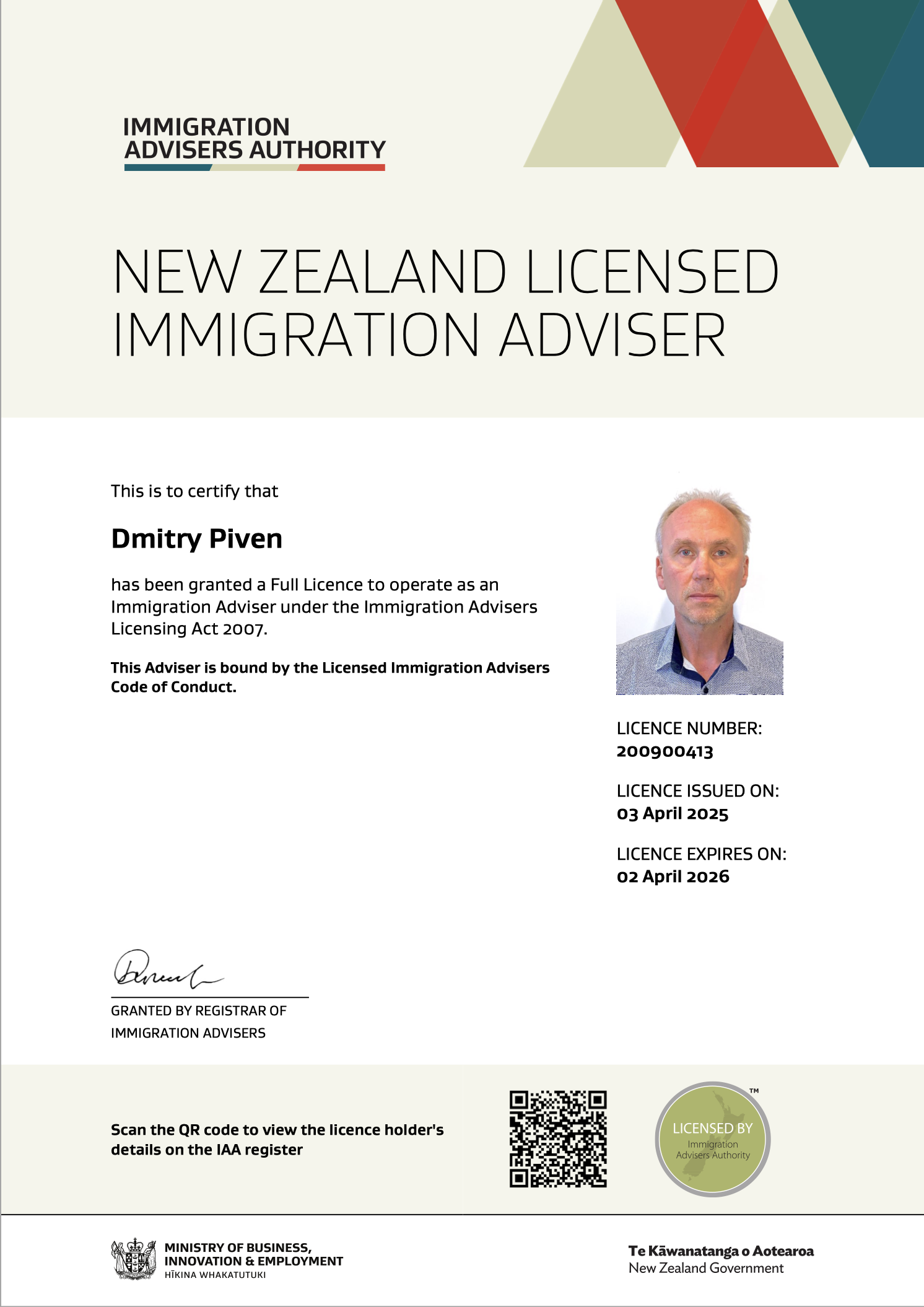 Наличие государственной лицензии – важный момент в выборе компании для лицензированной иммиграции. Каждый консультант, оказывающий услуги по иммиграции, обязан иметь лицензию на оказание иммиграционных услуг. Это также распространяется на тех, кто оказывает иммиграционные услуги за пределами Новой Зеландии.