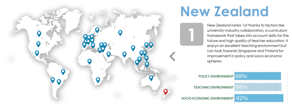 образования в таком вопросе как подготовка студентов к профессиям будущего, поставило Новую Зеландию на первое место в международном рейтинге. Если коротко, Новая Зеландия впереди 34 стран мира по развитию таких навыков у студентов как междисциплинарные, творческие и аналитические, предпринимательские и лидерские. Плюс к этому тесное сотрудничество школ/университетов с новозеландскими бизнесами, замечательный педагогический климат, высокий уровень и продвинутые методики преподавания, и первое место заслужено.
